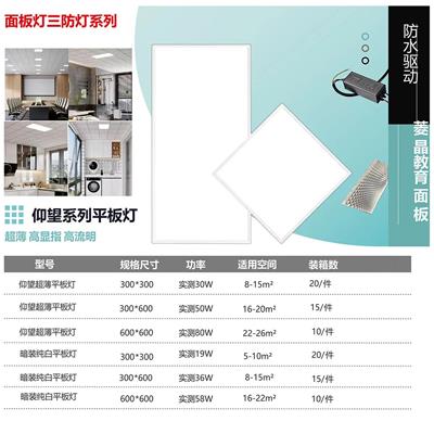 仰望系列平板灯超薄高显指高流明菱晶板防水驱动