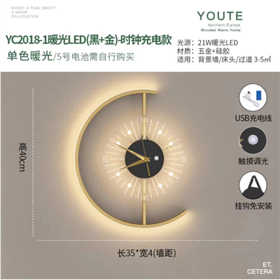 YC2018真时钟壁灯充电款免布线带触摸开关
